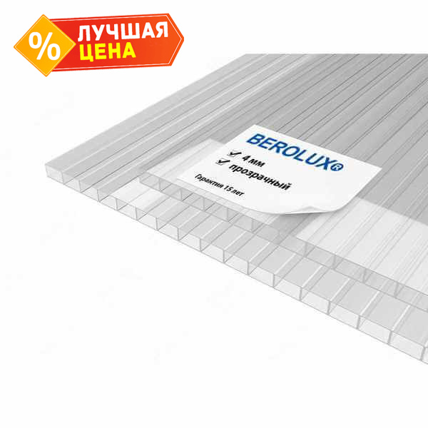 Сотовый поликарбонат 4 мм Беролюкс прозрачный 2100х6000 мм
