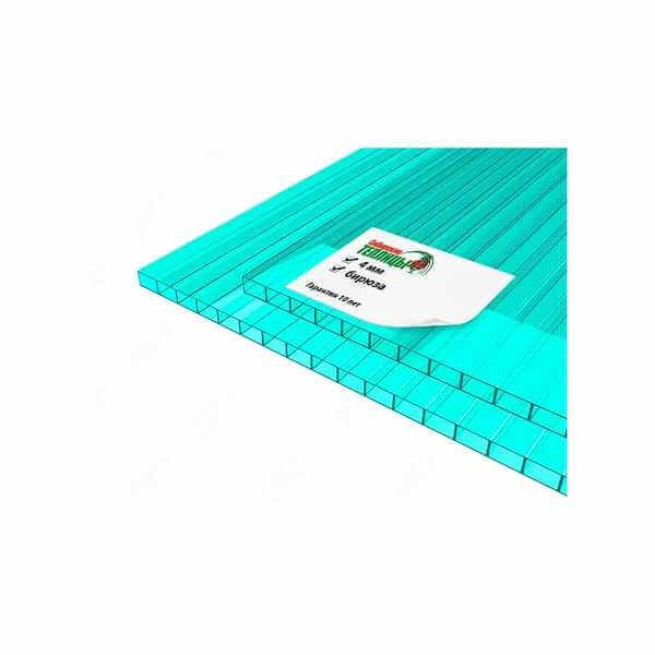 Сотовый поликарбонат 4 мм СИБИРСКИЕ ТЕПЛИЦЫ бирюза 2100х6000 мм - это прочный и легкий материал, который идеально подходит для создания теплиц, оранжерей, навесов и других конструкций. Поликарбонат обладает высокой устойчивостью к ультрафиолетовому излучению, а также хорошей теплоизоляцией, что позволяет создавать комфортные условия для растений.