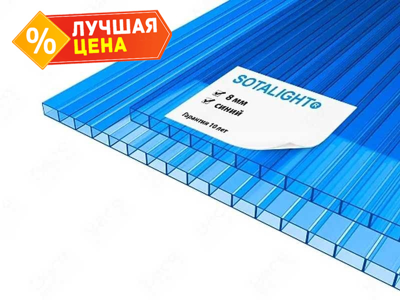Сотовый поликарбонат 8 мм SOTALIGHT синий 2100х12000 мм - это прочный и легкий материал, который отлично подходит для использования в различных строительных и дизайнерских проектах. Поликарбонат обладает высокой прочностью и устойчивостью к воздействию внешних факторов, что делает его идеальным выбором для создания крыш, навесов, ограждений и других конструкций.
