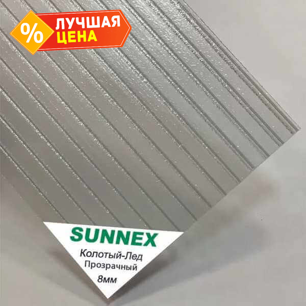 Сотовый поликарбонат 8 мм SUNNEX колотый лед прозрачный 2100х6000 мм