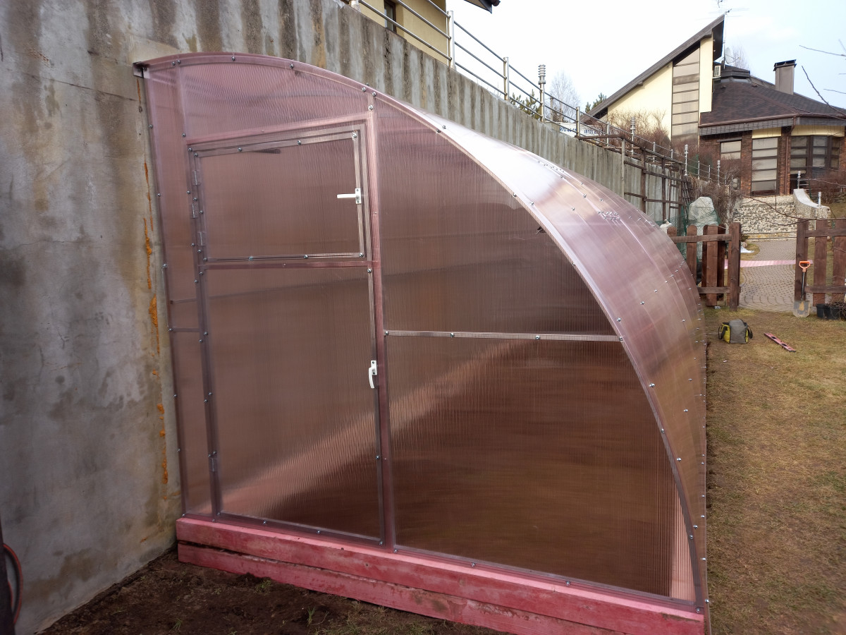 Теплица из поликарбоната Усиленная Пристенная 2,3х4 h=2.1 м профиль 25х25 мм